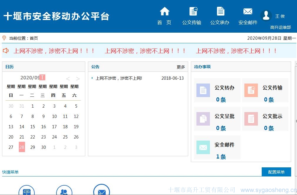 為(wèi)解決縣直機(jī)關單位和(hé)鄉(xiāng)(鎮)之間(jiān)信息資源←§₹₹共享、公文(wén)交換、通(tōng)知(zhī)傳達、工(gōng)作('¶ zuò)彙報(bào)等異地(dì)信息方便快(kuài)捷安全®↑↕傳輸問(wèn)題,根據國(guó)家(jiā)密碼管理(lǐ)局《關于€₽加強重要(yào)領域國(guó)産密碼應用(yòng₽ ©)的(de)指導意見(jiàn)》和(hé)《2006-2020年(nián)國(guó)家(jiā)信息化&♦(huà)發展戰略》要(yào)求,十堰市(shì)國(guó)家(jiā)密碼管理(lǐ)局采用(yòn∑•★"g)“政府引導建設、企業(yè)投資運營、政府購(gòu)買服務”的(₩<de)方式,建立政企合作(zuò)模式,充分(fēn)發揮企業(yè)的(de)市(shìφγ↑)場(chǎng)優勢、技(jì)術(shù)勢力,§☆→™共同建設十堰市(shì)安全移動辦公系統。